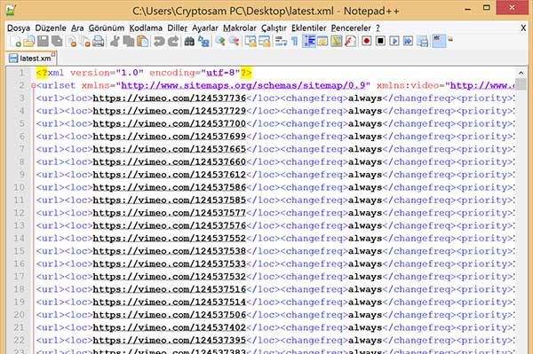 Sitemap: https://vimeo-sitemaps.storage.googleapis.com/master.xml.gz Sitemap: https://vimeo-sitemaps.storage.googleapis.com/latest.xml.gzNe çıkardı bize? Master: ana sitemap bide Latest son içerikler. Bizim işimize latest olan yarayacak. O dosya 3-5 er dk aralıklar değişir ve oraya son vimeoya yüklenen içerikler eklenir. Yapısı alttaki gibi olur.