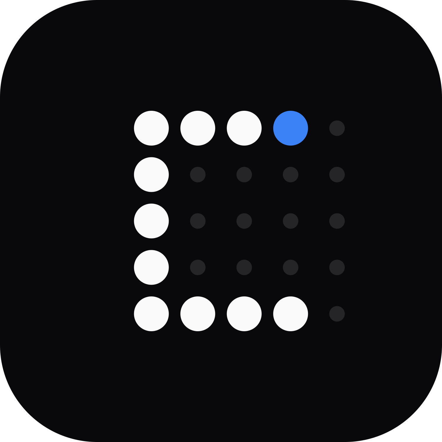 Logo 5×5 piksel ızgarasından çıkan bir C harfi. Noktaların arasından okunur — "decode" eyleminin kendisi. Sağ üst köşedeki mavi nokta, matrisin çözülme anıdır.